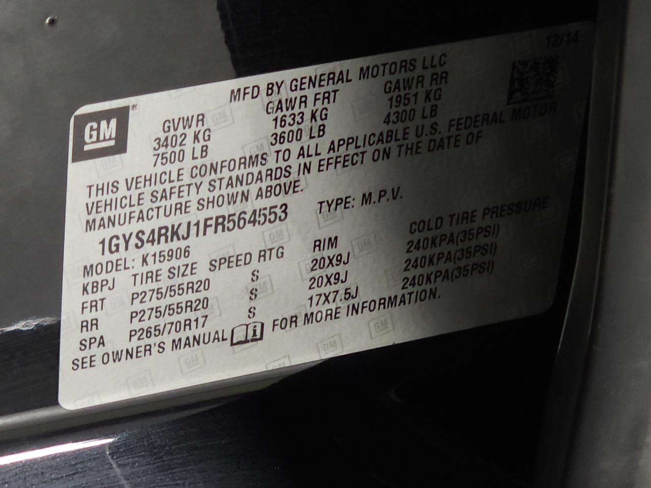 1GYS4RKJ1FR564553